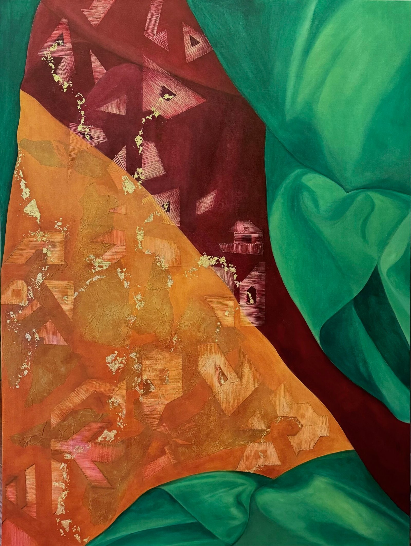 Acrylic & Mixed media on canvas, 48 x 36 inches (121 x 91 cm)